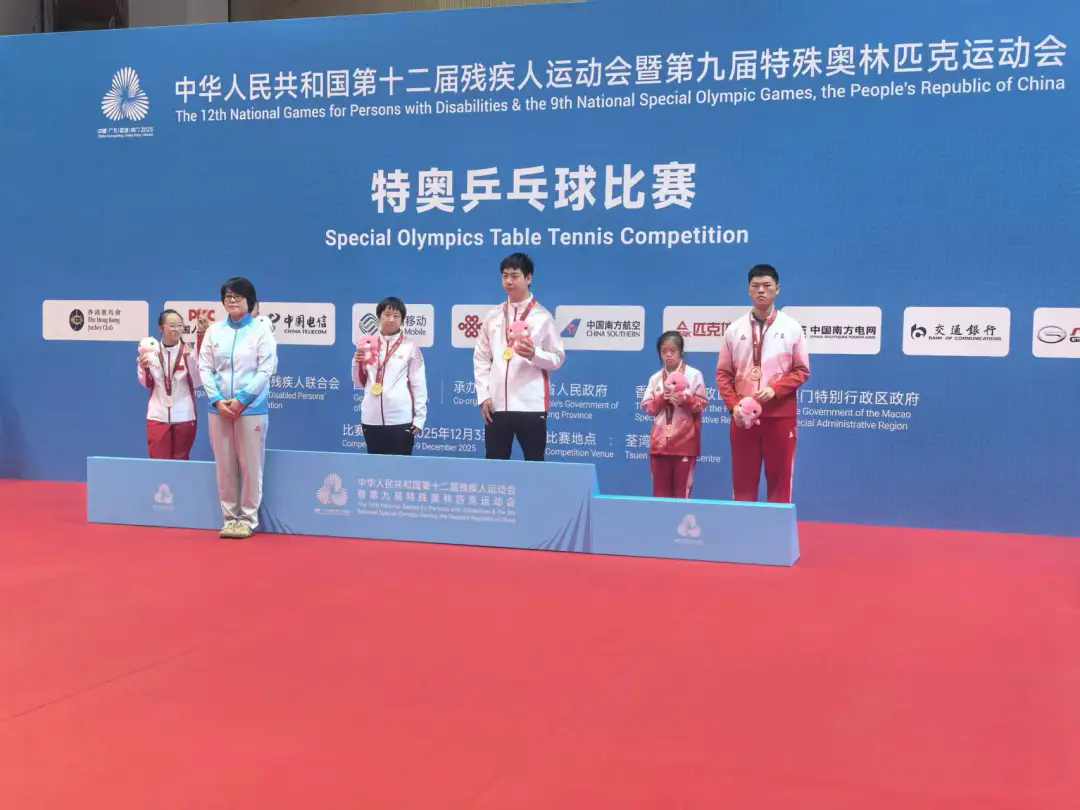 12月8日,全国第十二届残疾人运动会暨第九届特殊奥林匹克运动会特奥乒乓球比赛在香港荃湾体育馆继续开赛。在第二个决赛日的激烈角逐中,我省特奥运动员再传捷报:王莹与付研携手斩获混合双打16-21岁组金牌,初彦桥与张海龙摘得混合双打22-29岁组金牌,为我省在全国残特奥金牌榜上再添2金。