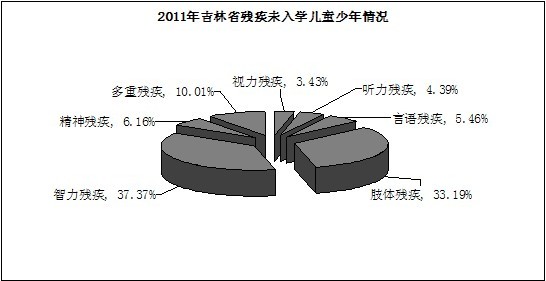 未入学适龄残疾儿童少年总数1868人,其中视力残疾64人,听力残疾82人,言语残疾102人,智力残疾620人,肢体残疾698人,精神残疾115人,多重残疾187人。