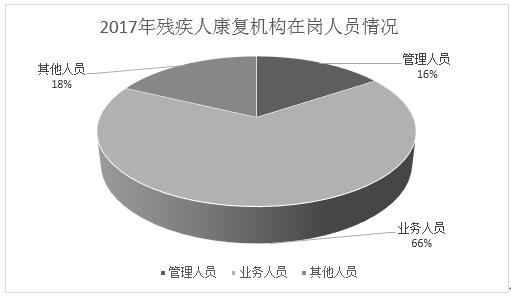截至2017年底,全省已有残疾人康复机构213个,其中,提供视力残疾康复服务的机构54个,提供听力言语残疾康复服务的机构34个,提供肢体残疾康复服务的机构80个,提供智力残疾康复服务的机构40个,提供精神残疾康复服务的机构38个,提供孤独症儿童康复服务的机构37个,提供辅助器具服务的机构40个。康复机构在岗人员达9050人,其中,管理人员1417人,专业技术人员6014人,其他人员1619人。