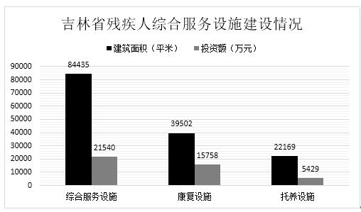截至2017年底,已竣工并投入使用的各级残疾人综合服务设施46个,总建设规模84435平方米,总投资21540万元;已竣工并投入使用的各级残疾人康复设施10个,总建设规模39502平方米,总投资15758万元;已竣工并投入使用的各级残疾人托养服务设施8个,总建设规模22169平方米,总投资5429万元。