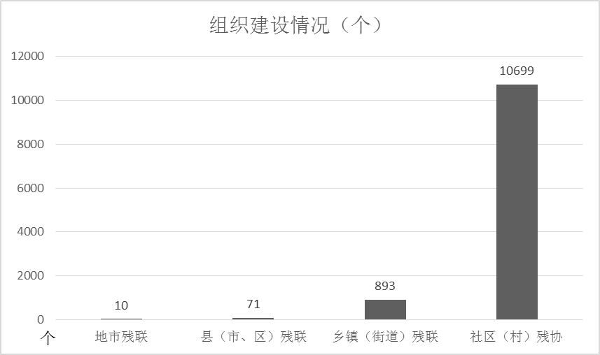 2022年,市县乡共有残联974个,各地市已建残联10个,县(市、区)已建残联71个,乡镇(街道)已建残联893个,社区(村)已建残协10699个。