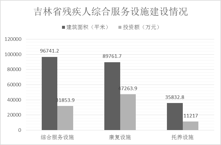 截至2022年底,已竣工的各级残疾人综合服务设施47个,总建设规模96741.2平方米,总投资31853.9万元;已竣工的各级残疾人康复设施15个,总建设规模89761.7平方米,总投资47263.9万元;已竣工的各级残疾人托养服务设施11个,总建设规模35832.8平方米,总投资11217.0万元。