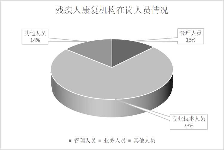 截至2023年底,残疾人康复机构有238个。康复机构在岗人员有8011人,其中,管理人员1005人,业务人员5870人,其他人员1136人。
