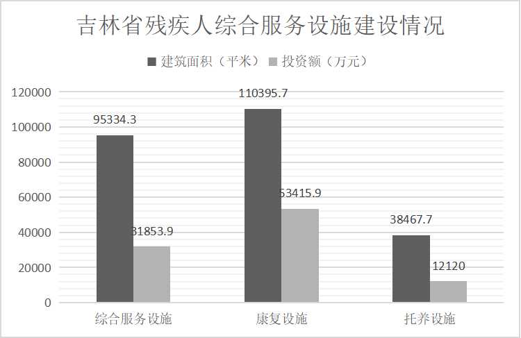 截至2023年底,已竣工的各级残疾人综合服务设施47个,总建设规模95334.3平方米,总投资31853.9万元;已竣工的各级残疾人康复设施16个,总建设规模110395.7平方米,总投资53415.9万元;已竣工的各级残疾人托养服务设施12个,总建设规模38467.7平方米,总投资12120.0万元。